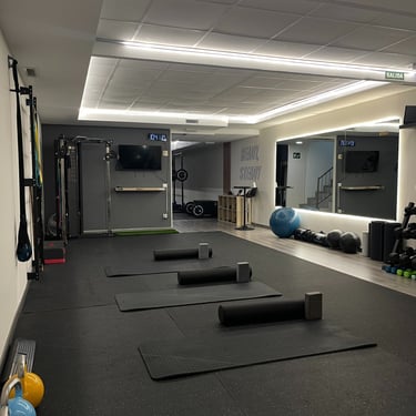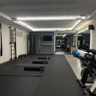 Sala de entrenamiento personal: Totalmente equipadas, nuestras salas están diseñadas para ofrecerte el espacio y ambiente adecuado tanto para tus sesiones de entrenamiento. La sala está equipada con los últimos avances en maquinaria y accesorios para garantizar un entrenamiento eficaz y seguro.
